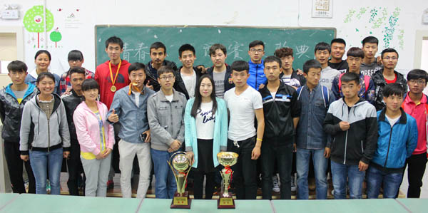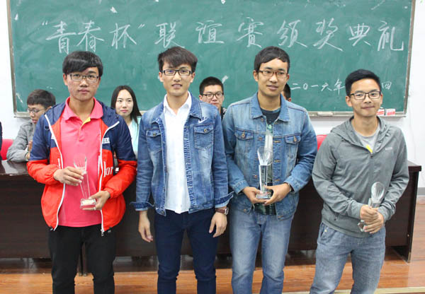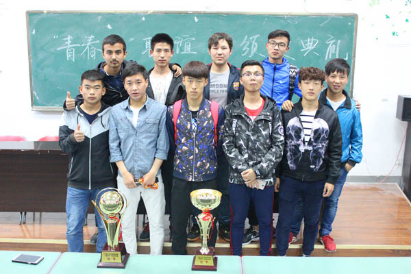 及个人颁发奖品,并充分表扬肯定了同学们负重拼搏、阳光向上的体育精神。首届“青春杯”足球、篮球联谊赛在全体参赛队的积极参与和各院系的大力支持下圆满谢幕。
