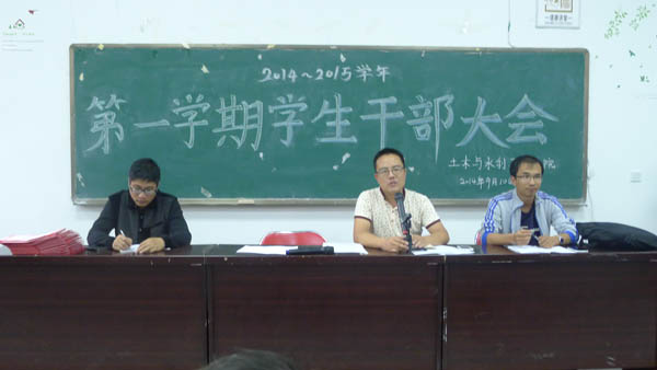 2014-2015学年第一学期学生干部大会在工科楼第三阶梯教室召开。大会由学生办公室主任郭利主持,AG亚游官网