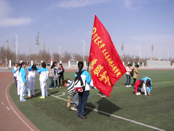 学雷锋志愿者服务队”在工科楼下集合,进行学雷锋志愿服务活动。
