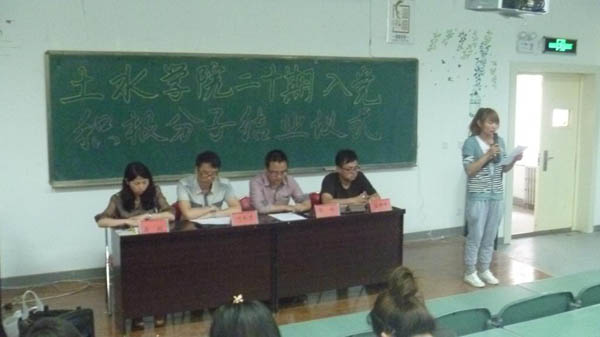 党组织于工科楼三阶教室举行了第二十期入党积极分子结业仪式。学工办主任郭利,团委书记叶新才、12级辅导员马姣、学生党建工作负责人王锋峰以及第二十期全体入党积极分子参加了仪式,大会由郭利老师主持。