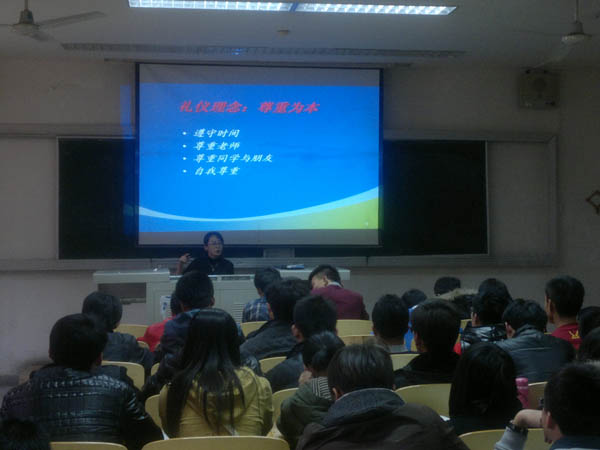硕士生导师许丽君副教授在c区1教111教室为团学骨干做“现代大学生礼仪与修养”的专题讲座。