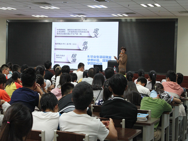 潘瑞老师首先介绍了我国高校资助制度发展历程,并系统讲解了我国以“奖、贷、助、补、减、免”为主的现有资助体系。在解读我国高校资助政策时,潘瑞老师为同学们详细讲解了国家奖学金、助学金、学生贷款、勤工助学、学费减免、师范生免费教育和辅助措施这七个方面的问题。随后,潘老师向同学们介绍了家庭经济困难学生的认定流程和资助办法。最后,潘老师结合AG亚游官网