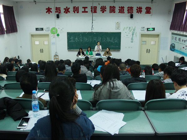 在工科楼三阶隆重召开了“学风建设推进会”。党委副书记柳松洁、辅导员马小凤和胡思斯、团委学生会全体干部以及14至16级各班班长、团支书、学习委员参加了大会,会议由团委书记王娜主持。