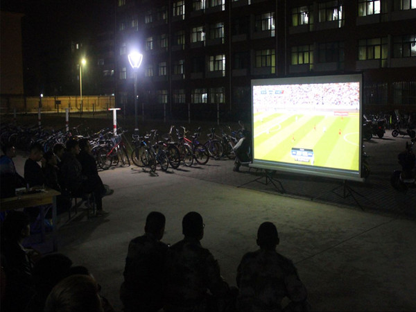 2017年3月28日,晚上8点,AG亚游官网 团委学生会于男生宿舍21号楼下放映足球世界杯预选赛的第七场——中国客场挑战伊朗的比赛。