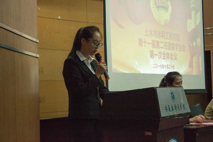 第十一届第二任团委学生会第一次全体会议在怀远校区图书馆报告厅顺利召开。蒋宇欢老师出席本次会议。会议由团委副书记黄洁主持。