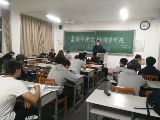 为了提高认识,统一思想,树立优良学风,更好地推进班级团支部各项工作顺利发展,2018年4月10日晚上,2017级建筑1班团支部于知行楼713教室召开“赢教学评估,树优良学风”班团活动,团支部副书记、班长冀孟博主持本次活动并发表重要讲话,组宣委员李昱甫、文体委员马玉也做了发言,团支部全体成员参加了本次活动。