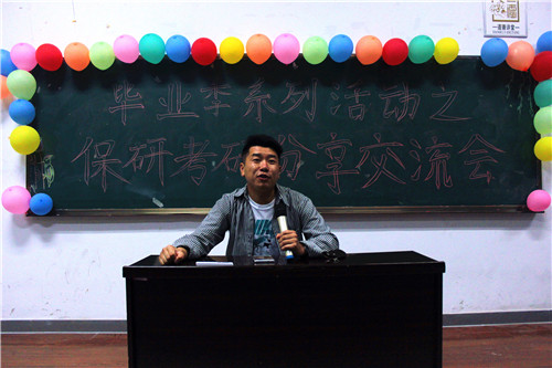于5月18-24日根据专业设置分六场进行了“毕业季系列活动之保研考研经验分享会”。分享会由学办的王娜老师主持,2015、2016级同学们提问踊跃,交流会气氛热烈。