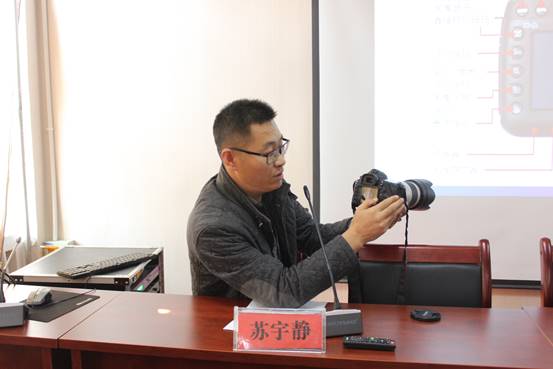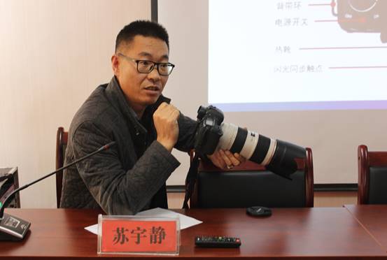 首先由蒋宇欢简要介绍了本次讲座的内容。随后,苏宇静开始向同学们讲解新闻与摄影的相关知识。他简略介绍了新闻与摄影发展简史,让同学们对摄影基本知识有了初步了解。他还结合实物与PPT着重讲解了相机的构造、持机方式、使用方法以及拍不同种类照片的注意事项和技巧。又通过不同照片的对比,让同学们明确了光圈、焦距、不同镜头的概念以及快门与快门速度的含义。