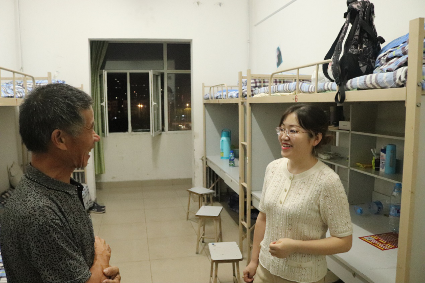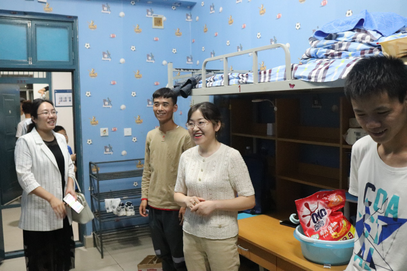 党委副书记柳松洁和19级代理年级主任王娜来到15号楼男生公寓走访新生住宿情况,对19级新生与学长住的混合宿舍进行实地了解。从二楼开始,老师们和小班,班助一起来到男生新生宿舍,柳松洁和王娜对新生是否适应宿舍生活,宿舍卫生风貌如何细心的提问;有家长恰好在宿舍的老师们亲切的嘱咐,让其放心。除此之外,因为是与学长混住,老师们还对提前到校的学长嘱咐是一个专业的要对学弟们传业授道解惑,不是一个专业的也要对学弟在生活上多加照顾,对新生们嘱咐要与学长们和睦相处,不论是宿舍卫生方面还是学习精神方面都要提升,一起进步。