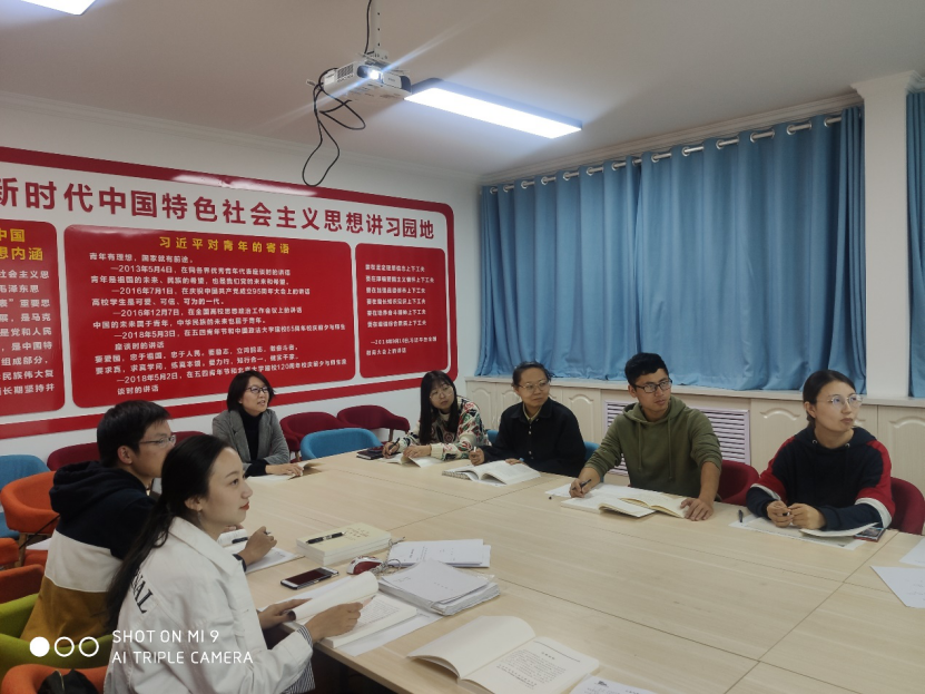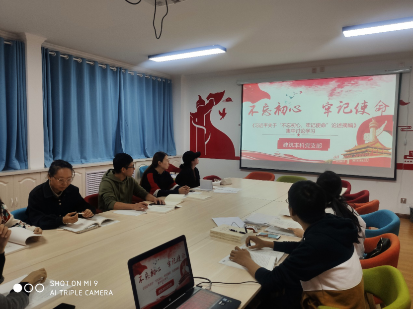 建筑本科党支部在党员活动室开展"不忘初心、牢记使命"主题教育集中学习活动。党支部书记马小凤主持学习活动,党支部成员参加学习。