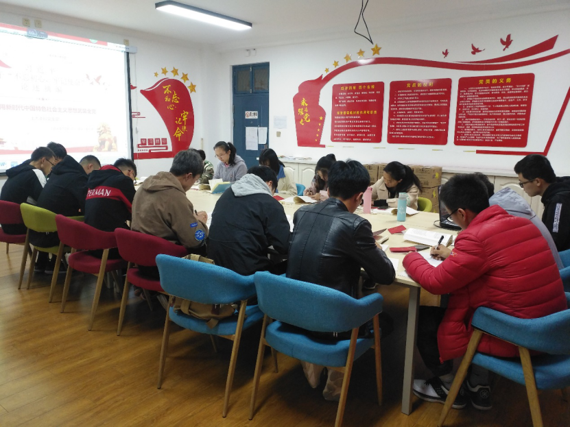 会议开始,首先全体党员对于书本内容进行自我学习和总结,经过全体党员学习,由秦尚源同志就思想建党、理论强党内容作了介绍,并且提出如何做的问题,从学生党员、党员干部角度发表了自己的观点;其次详细介绍了“八个明确”、“十四个坚持”具体内容,并就习近平新时代中国特色社会主义思想的现实意义方面进行交流。最后由陈亚东同志就什么是习近平新时代中国特色社会主义思想作出解释,并且从树立长期坚持和发展习近平新时代中国特色社会主义思想、坚定理想信念、加强思想建设等方面说出了自己的一些看法,要求党员用这一思想严格规范自我、稳扎落实“不忘初心、牢记使命”主题教育,用这一思想武装全体党员。
