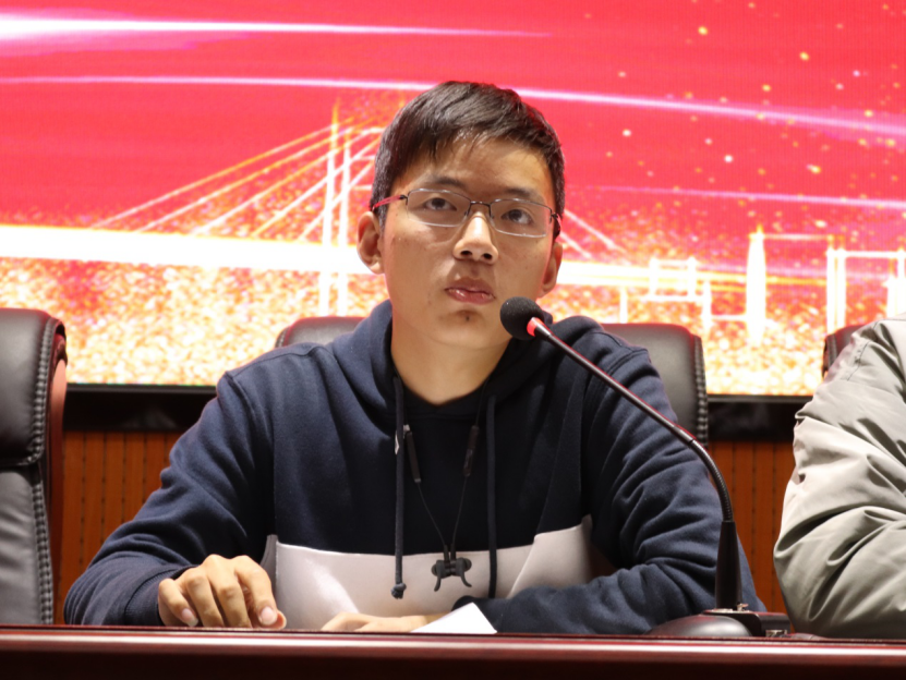 李昱甫发言。他从“大家究竟应该在团学中收获些什么”“大家加入团学的初心是什么?”两个问题出发,与与会人员分享了土水学生组织“追求卓越,服务师生”的精神。