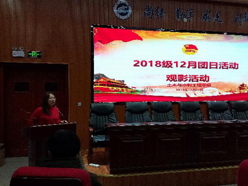 本次活动中,2018级全体人员,由团总支书组织,共分为两队,于知行楼三阶观看《我和我的祖国》电影,此次团日活动,摒弃了以往枯燥形式,以观影的方式,让大家融入到此次团日活动中,也在一定程度上达到了活动目的。