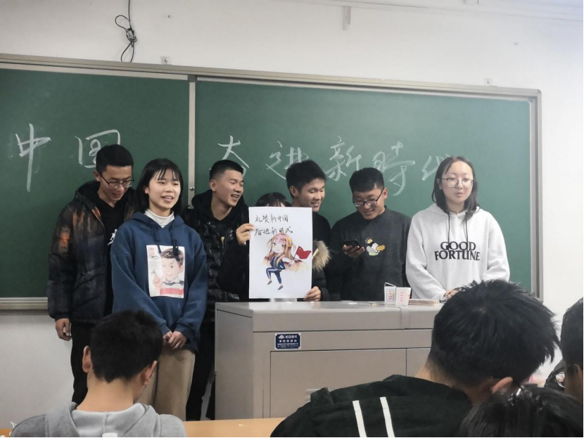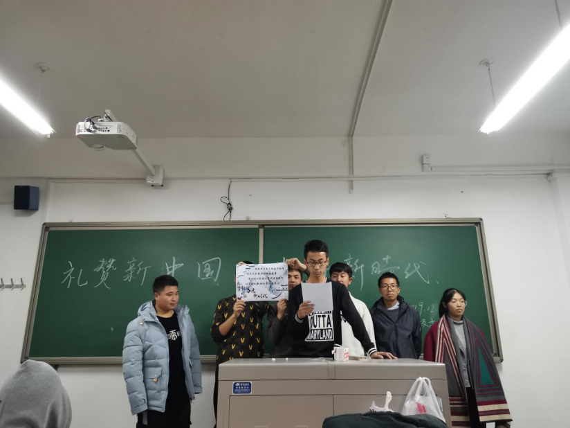 2019级土木工程1班团支部,推陈出新,首先,团支书以大展板的形式展示了有关自新中国成立以来具有里程碑意义的历史事件,并向大家进行详细解说相关内容。而后采用分组比赛的形式,每组通过自己的想法,制作海报,并全组上台向全班同学讲解。