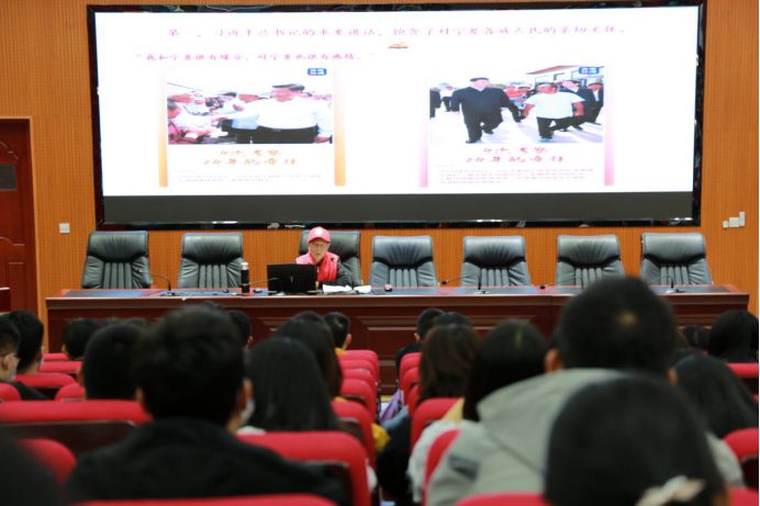 以习近平在吴忠市红寺堡区红寺堡访问为例,指出习近平对于宁夏发展的期望,为宁夏指明前进方向,赋予宁夏时代重任,明确宁夏重点任务。纳志学着重强调了习近平对宁夏的深情嘱托:坚定理想信念,保持清醒头脑;激发奋斗激情,勇于担当作为;全面从严治党,持续正风肃纪;坚持真抓实干,不断造福人民。最后,纳志学又阐述了习近平对宁夏发展的整体要求:强调政治方向,发展理念,责任担当,奋斗目标。