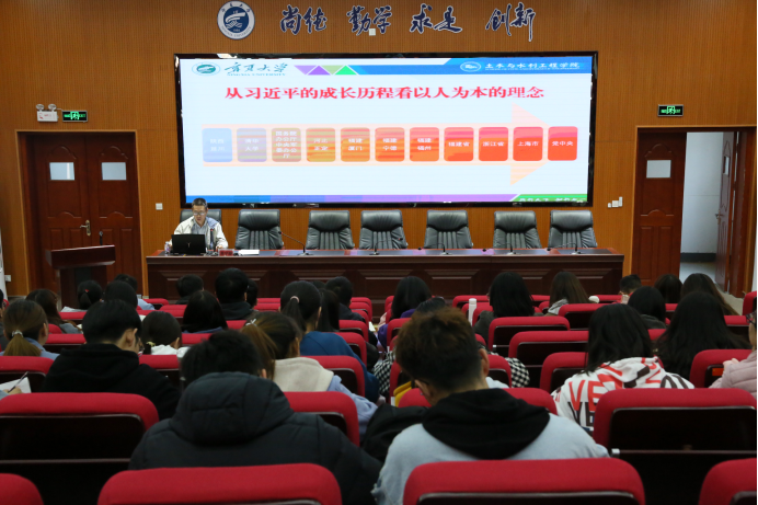党委副书记苏宇静为全体学员进行了“习近平以人为本的理念”授课辅导。苏书记分别从习近平总书记的成长历程看以人为本的理念和《习近平谈治国理政》为大家进行了讲解。通过讲述习近平总书记的七年知青岁月等各个时期的理念践行,向大家介绍了正是因为总书记一直把民族、人民、党放在前面,在各方面提出正确的引导,才有了国家现在的发展繁荣和安定。