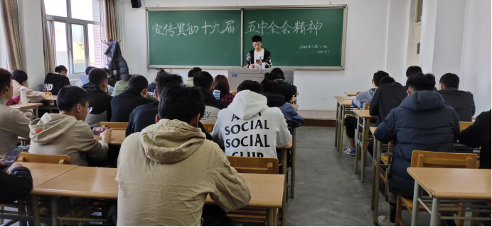 组织开展了“学习党的十九届五中全会精神”主题团日活动。全院各级团支部积极响应,在各教学楼开展本次团日活动,活动参与团员人数达850人。