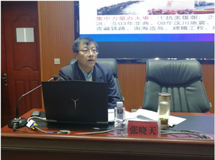 张晓天书记主要围绕“决胜全面建成小康社会取得的决定性成就”带领大家进行了学习。张书记首先带领大家学习了十大成就中的前四条,分别是中国共产党领导和我国社会主义制度优势得到进一步彰显;经济实力、科技实力、综合国力跃上新的大台阶;脱贫攻坚成果举世瞩目;粮食年产量连续五年稳定在一万三千亿斤以上。张晓天书记指出,我国社会主义制度的巨大优势就是集中力量办大事,这一优势,使得我们具备超强的整合能力和高效的执行力,在各方面能迅速动员资源,集中力量攻克关系全局发展的短板和困难。并向大家介绍了一些国家集中力量办大事的具体体现,例如:抗美援朝,“两弹一星”,83严打,亚运会,亚洲金融危机,03非典,08年汶川大地震,北京奥运会等。并指出党的十八大以来我们取得的成绩更是巨大的,大飞机,港珠澳大桥,天眼工程,南海造岛,航空航天,高铁发展等,在国际形势如此复杂的情况下,我国可以稳步发展,保证领土完整,科技进步,综合实力提高就是因为我们坚持的社会主义制度。通过对比国内,国际疫情发展现状,介绍美国疫情,选举情况等,更加可以看出我国社会主义制度的巨大优势。另外,随着我国经济的不断突破发展,现在已稳居世界第二。