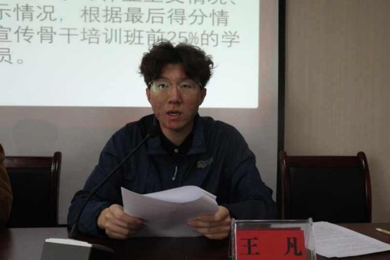 发展尽我们自己的力量。何涛宣读了培养计划。王凡介绍本次培训的考核要求及考核制度,随后白嘉怡代表学员发言。