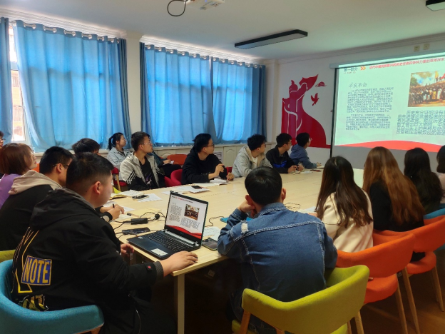 首先由支部党员郭成功组织党员对中国共产党简史进行学习,学习内容主要有以下三点:近代中国民族复兴的历史任务和各种力量的艰难探索;五四运动和马克思主义在中国的传播;以及中国共产党的成立和民主革命纲领的制定。并组织观看建党伟业短视频,巴黎和会谈判失败后,看到全国各地莘莘学子满腔的爱国热情迸发出来,他们以无所畏惧的姿态走上街头,高呼“爱国无罪”、“革命万岁”等口号示威、游行、继而火烧赵家楼、痛殴卖国贼的情景,激发了各位党员的拳拳爱国心。