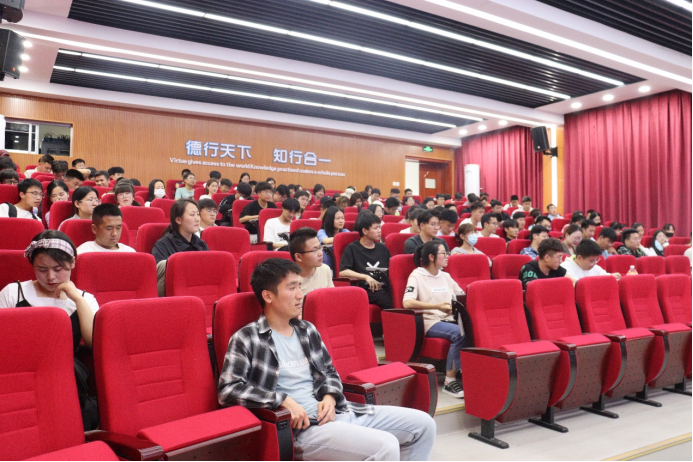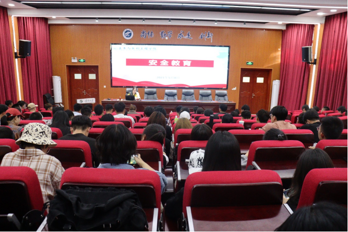 在知行楼三楼报告厅举行安全教育培训讲座,学生办公室主任王娜主讲,各团支部班干部参加此次讲座。