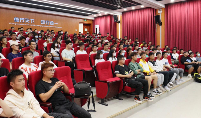 于2021年9月10日在知行楼三楼阶梯教室举行关于资助政策的入学教育讲座,2019级本科生辅导员梁冀宁主讲,2022级本科生参加。