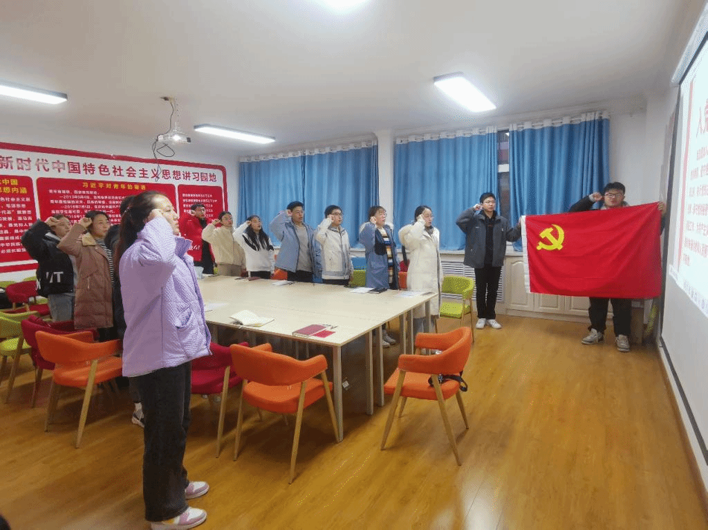 会议第一项是预备党员的接收。水利本科党支部严格按照党员发展流程进行预备党员接收工作。首先由高龙,龚玉琴,丰玉婷三名发展对象宣读自己的入党志愿书,表明入党动机以及加入党组织的决心。随后入党介绍人及与会党员说明他们的优缺点,对其是否入党表明意见,采用无记名投票方式进行投票表决。根据投票结果,高龙,龚玉琴,丰玉婷三人全票通过,接收为预备党员。最后由组织委员郑小雨带领全体党员面向党旗进行庄严宣誓。