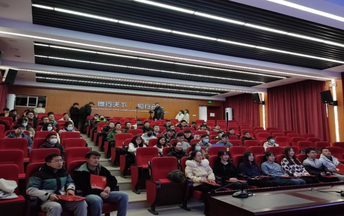 道德宣讲员何进宇老师从道德讲堂简介、道德模范学习和道德讲堂学习内容三个方面为同学们详细讲解了道德的重要性。他表示道德讲堂从试点到推开,从规范到提升,从实践到创新,充分发挥以德育人,以文化人的独特优势,已经成为推动经济社会又好又快发展的强大引擎,成为全国精神文明建设的重大典型。接着,他列举了在抗击SARS和“新冠”的斗争中,钟南山主动请缨,成为抗疫的领军人物,并本着实事求是的精神,主动向国外的专家学者以及新闻媒体介绍中国政府所采取的正确措施,维护了祖国的声誉的例子,提醒我们一定要向身边优秀的道德模范学习。此外,何老师还以党员身份给大家带来了党史知识的学习,同时传达了党中央最近召开的党的十九届六中全会精神与思想,进一步提高了在座师生的政治觉悟。在场师生对何老师的宣讲深表赞同,大家表示,中国特色社会主义进入新时代,作为新时代的青年学子,必须大力弘扬爱国主义精神,不忘初心、牢记使命,把爱国主义教育贯穿国民教育和精神文明建设全过程,进而全面付诸报国强国之行,把爱国主义精神转化为建功立业新时代的实际行动。