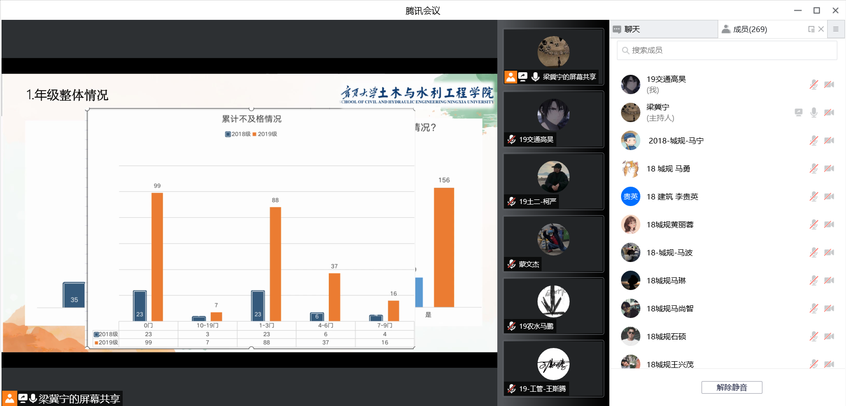 2019级寒假年级大会暨2021-2022学年秋季学期年级学风总结大会在线上腾讯会议召开。2019级全体本科生和2018级建规系本科生参会,会议由2019级本科生辅导员梁冀宁主持。