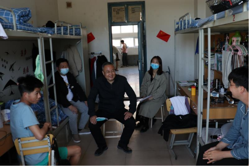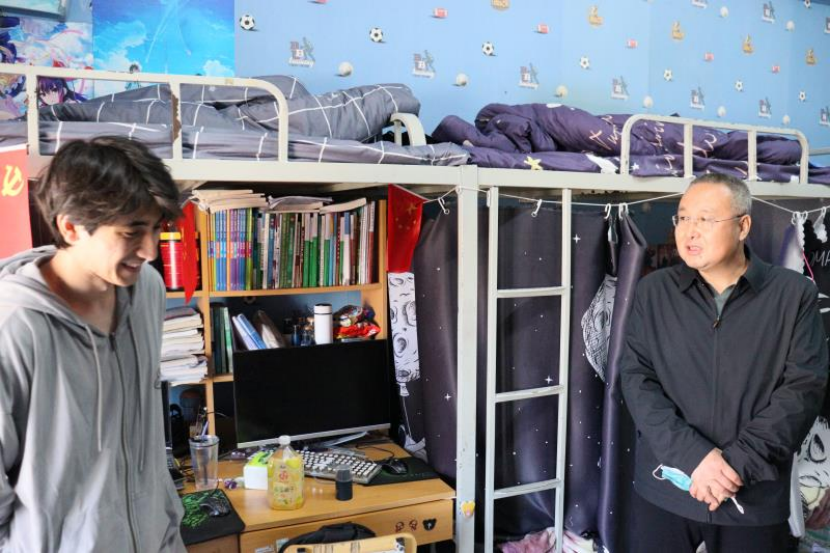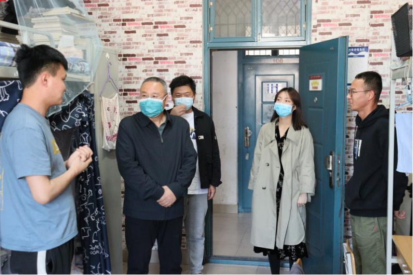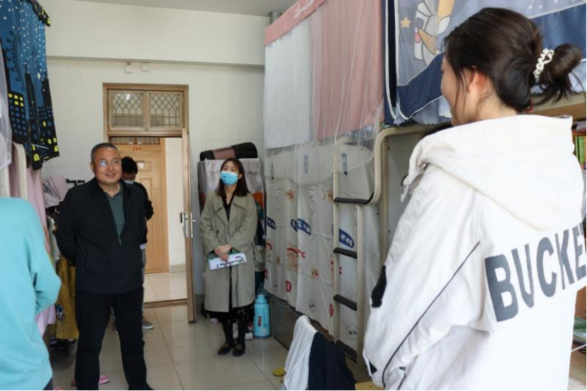 领导陈晓敏,辅导员何涛、梁冀宁深入学生宿舍,实地看望在校学生,开展五一假期慰问。