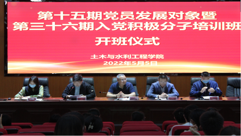 党委书记陈晓敏,党委副书记尹娟、苏宇静,各党支部书记以及第十五期发展对象和2022年春季学期积极分子全体学员参加开班仪式,本次会议由何涛老师主持。