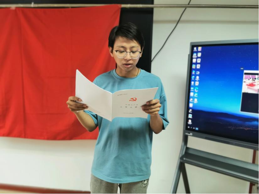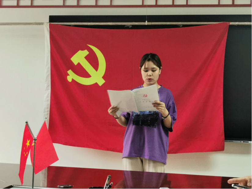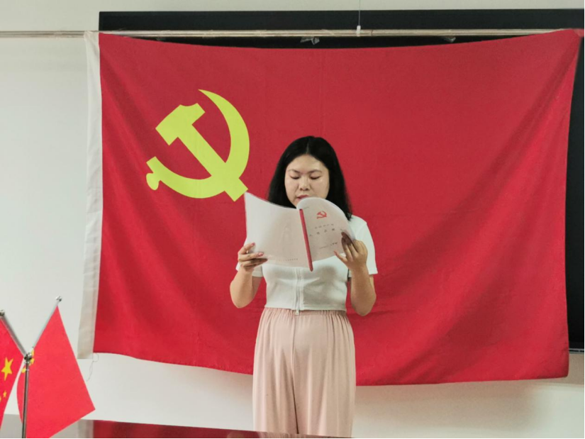 随后全体发展对象面对党旗宣誓,由党支部组织委员丰丽阳领誓。四位同志备受鼓舞,他们表示在以后的工作中和生活中一定严于律己,用高标准规范自己的言行,发挥好模范带头作用。