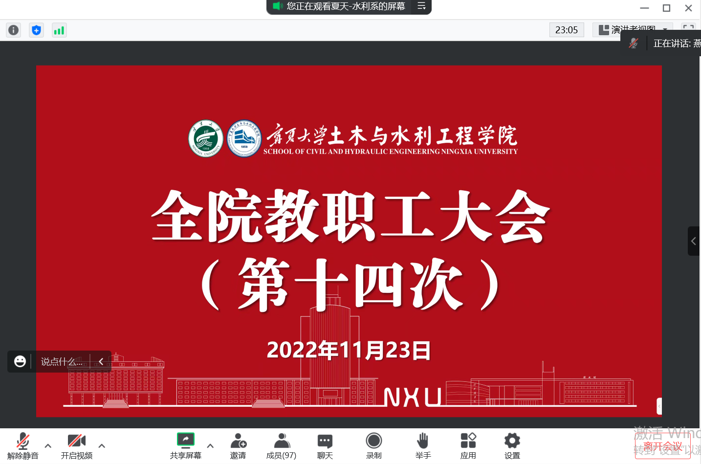 承办“2022丝绸之路智慧水利与低碳能源国际产学研用合作研讨会”的相关事宜,安排部署了期末考试有关工作;刘海峰副院长通报了近期科研工作以及研究生相关工作安排;苏宇静副书记传达了《AG亚游官网