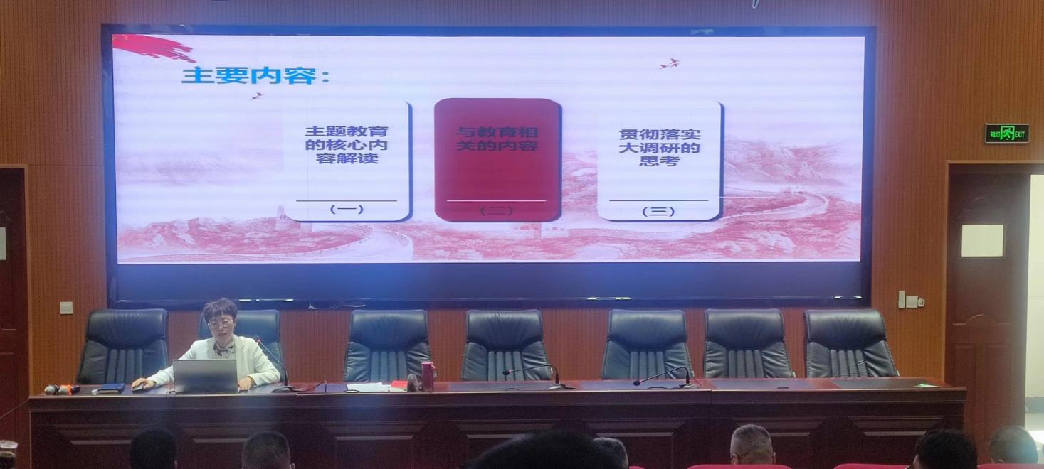 第七次党代会提出的目标要求对主题教育的基本任务和目标进行了详细解读;其次,介绍了新时期高等教育的育人新观点新方法等内容,传达了习近平总书记对教师“三传三塑”、“四有好老师”的要求;最后,分享了贯彻落实大调研的思考,提出AG亚游官网