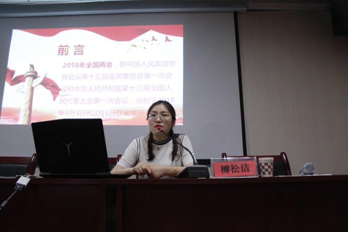 报告之初,柳松洁老师和同学们分享了“两会热点”,分别列举蓝天保卫战、加快解决煤污染、海绵城市、中兴事件、科技创新、城镇失业率、双创升级版、人工智能等。紧接着,带领同学们学习了2018年十大热点:健康中国、就业问题、一带一路、环境问题、脱贫攻坚、人工智能、地产调控、户籍改革、食品安全、社会保障等内容。柳松洁老师通过热点词和关键词的解读,帮助同学们认识当前国情,把握当前国策的主线条,从而明确自己身负的责任和担当。