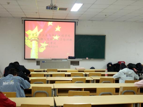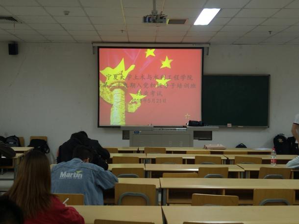 第二十九期入党积极分子党课结业考试在文萃校区二教106教室举行。共计60名入党积极分子参加此次考试。监考成员由部分学生党员担任。