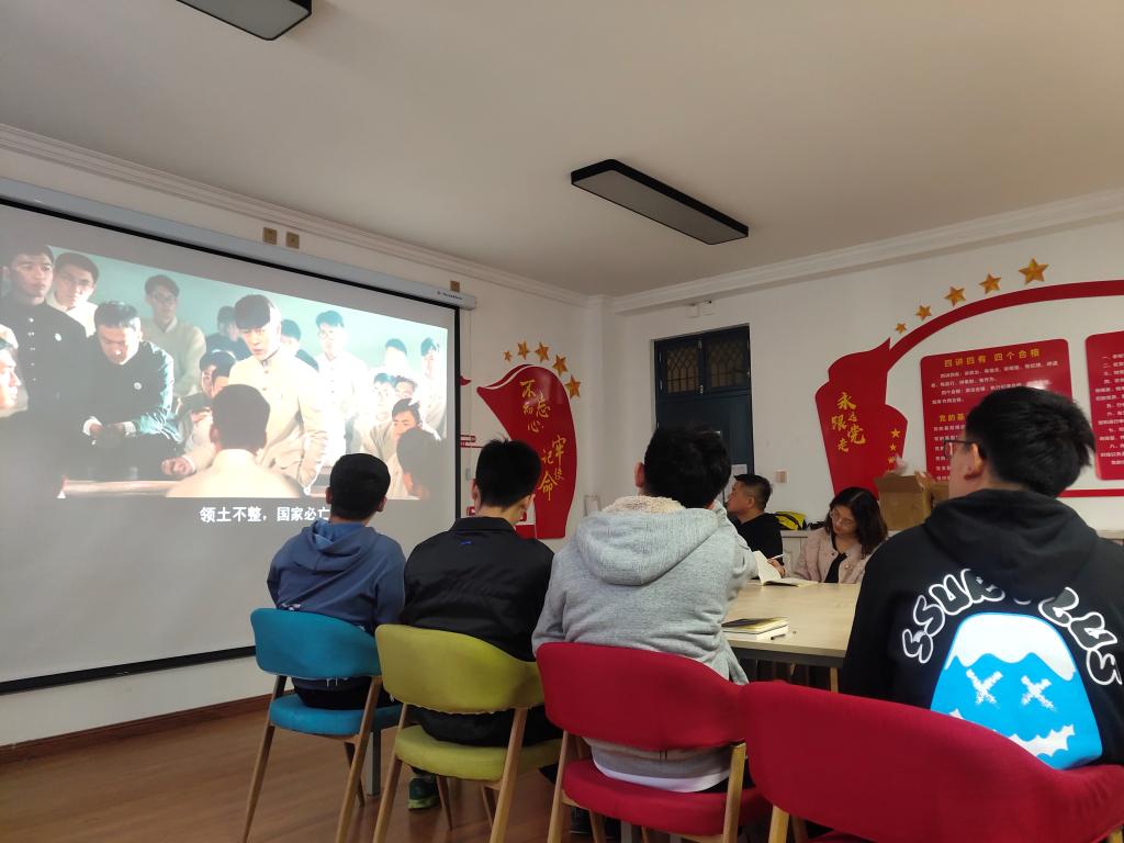 首先由支部党员郭成功组织党员对中国共产党党史进行学习,学习内容主要有以下三点:近代中国民族复兴的历史任务和各种力量的艰难探索;五四运动和马克思主义在中国的传播;以及中国共产党的成立和民主革命纲领的制定。并组织观看建党伟业短视频,巴黎和会谈判失败后,看到全国各地莘莘学子满腔的爱国热情迸发出来,他们以无所畏惧的姿态走上街头,高呼“爱国无罪”、“革命万岁”等口号示威、游行、继而火烧赵家楼、痛殴卖国贼的情景,激发了各位党员的拳拳爱国心。