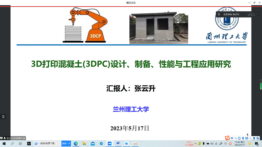 师生做了题目为“3D打印混凝土(3DPC)设计、制备、性能与工程应用研究”的线上学术报告。报告会由毛明杰院长主持,AG亚游官网